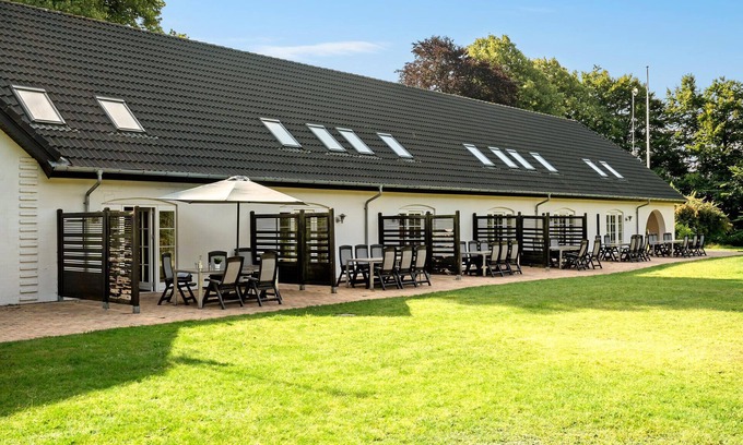 Spend time in the spacious outdoor area. Have breakfast on the private terrace with seating area or round off the day with a glass of wine. Use the spacious lawn for leisure activities or simply relax with a view of the green surroundings. Covered areas with long wooden benches are also ideal for socialising.