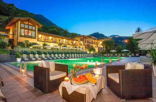 Beautiful apartment in Tremosine del Garda, on the second floor (without elevator) of a residential complex, just 6 km from the beautiful Lake Garda. The accommodation is accessible via an external staircase and consists of a living room with kitchenette, a bedroom with double bed and a bathroom. On the second floor, in the open loft to the living room, there is another double bed. For communal use there is a swimming pool surrounded by a large lawn. From the terrace you can enjoy the beautiful view of the surrounding hills. Children can have fun in the large playground, while parents can relax in the wellness area. Upon request and payment: restaurant / pizzeria and tennis courts. The restaurant / pizzeria, wellness area with gym, pool and tennis courts are open from May to September and are not available in winter. The location is ideal to visit the famous town of Limone (12 km), a picturesque village protected by steep cliffs and also known as 'Limonaia del Nord'. Those who love motorcycle excursions should not miss the Forra road in Tremosine, also known as "Terrazzo del Lago" ("Terrace of the Lake", about 2 km). The town is located in the middle of Alto Garda Park and offers a breathtaking view of the western shore. For excursion lovers there is a wide choice of itineraries on foot, mountain bike or horseback, immersed in a natural environment of rare beauty. The most suitable activities for this area are canyoning and paragliding and in Campione (6 km) windsurfing and sailing. From Limone it is also possible to reach by ferry other famous places such as the elegant town of Salo '(40 km), Gardone Riviera with the Vittoriale or the Venetian coast, famous for its villas and amusement parks.