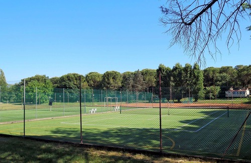 Belvedere Pineta Camping Village 4* offers a child-friendly vacation rental experience in Aquileia, Italy. This resort boasts 173 houses surrounded by a 50-hectare natural property with trees. It offers an array of amenities, including a swimming pool (25 x 12 m, seasonal availability: 01.May. - 21.Sep.), a children's pool, a tennis court, table tennis, boccia, volleyball, beach volleyball, and a children's playground. Additionally, it provides a restaurant, bar, bistro, WiFi (extra), shopping facilities, a kiosk, washing machines, tumble dryers (for shared use, extra), and bicycle rentals.