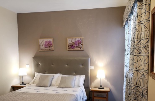 It has a kitchen with fridge, induction hob, microwave and washing machine, kettle, toaster. Cooking utensils, dishes, glasses, silverware, pots. Bathroom with complimentary toiletries. Flat screen TV. Bedding, towels, bathrobe.