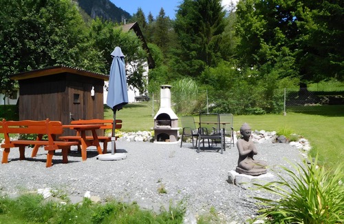 Layout: On the 1st floor: (Living room(single sofa bed, TV(satellite), seating area), open kitchen(dining table, seating area, electric kettle, toaster, coffee machine, oven, dishwasher, fridge-freezer, electric hot plates), bedroom(double bed(boxspring), bunk bed), bathroom(shower(walk-in shower), washbasin, heating(floor heating)), toilet, washing machine, balcony, hairdryer) sauna(shared with other guests), ski storage(ski boot heaters), terrace, garden, garden furniture, sun loungers, BBQ, parking, play equipment, Swing set