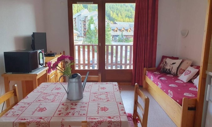 Charming two-room apartment in southern exposure, located on the second floor (with elevator) of the tourist residence "Horizon Blanc" (opposite the Tourist Office), in the heart of the resort at La Joue du Loup - 05250 LE DEVOLUY (HAUTES-ALPES), less than 100m from the ski slopes, in front of a small shopping center with supermarket, bakery, ski shop ... about 150m from the ESF and 30 meters from the daycare.