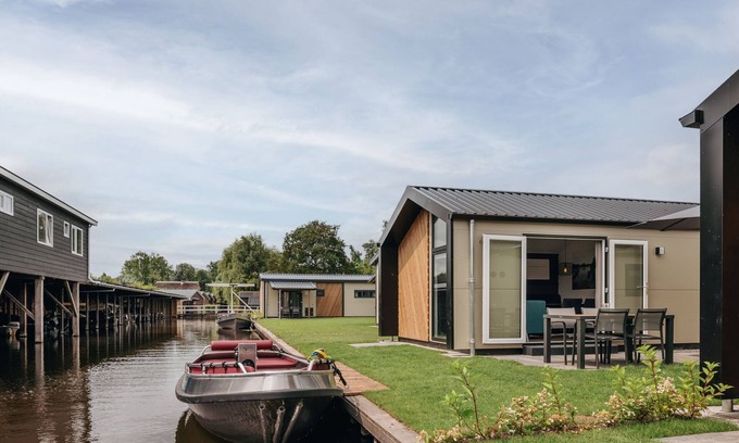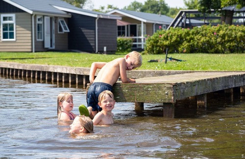 This comfortable, detached, single-storey chalet is located on the water in car-free holiday park Giethoorn, in the town with the same name, also known as the Venice of the North. The chalet has its own jetty and is furnished in a complete en comfortable way. It features a living room with TV. In the open plan kitchen you'll find a microwave and a dishwasher. There are two bedrooms, each with two 1-pers. beds, either in a 1 or 2-pers. setup. The bathroom has a shower and toilet. This type is child-friendly. The garden is completely fenced and a high chair and changing table are available by default. The chalet has air conditioning for extra comfort during hot days. The garden doors offer access to the garden with terrace and garden furniture. As a pure luxury, you will have a comfortable electric sloop at your disposal if your stay is between February and late October. It is located at the jetty, directly at your chalet. There is parking for one car in the central car park, at approx. 400 m from the holiday park. At Holiday Park Giethoorn, you can book various chalets for four to twelve people.