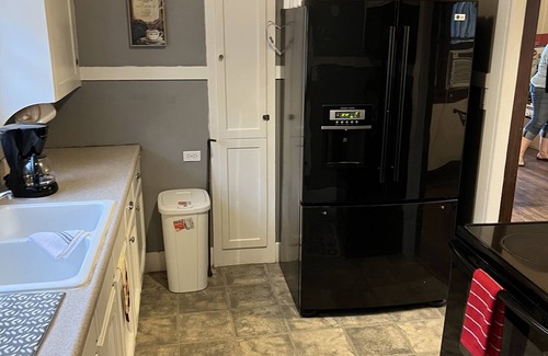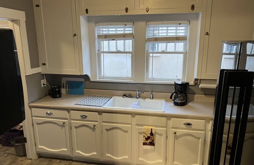 Comfy 2 bedroom 1 bath house. This old 1938 style home is beautiful with all the original wood Decor With a queen bed in each bedroom and a 43 inch smart tv in each bedroom as well so you can relax in private. The living room had to brand new couches with a 50 inch smart Tv for viewing. Internet included so you can stream all your favorite shows from all your favorite apps. Kitchen is fully stocked with all your cooking Essentials and dish wear if you decide to stay in and cook. If not this place is only 5 min from any eatery in Town! Private fenced in back yard! With a nice deck. Washer and dryer included for you convenience. Also had its own drive way for parking, along with street parking if needed.