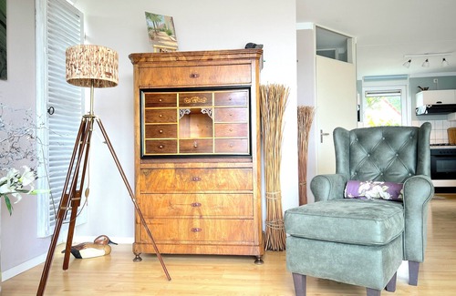 This lovely holiday home is located in Stevensweert, a village in Limburg near the border with Belgium. The house is located in a watery area, and from the house, you also have direct views of a beautiful pond. The house is comfortably and cozily furnished and has everything you need for a lovely stay. On the terrace and in the garden, you can have a nice meal together or relax with a book while enjoying the beautiful view of the water