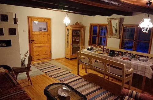 Idyllic cottage in the surroundings of a beautifully situated wooden house in the mountains of Slovakia.beautifully restored, former farmhouse in the traditional architectural style of the Low / High Tatras.in a fantastically quiet and beautiful location at an altitude of approx. 900m directly and solitary on the edge of the forest. The wooden house is situated at the foot of the almost 2000m high Kralova Hola (Königsberg) in the national park of the Low Tatras on the edge of the mountain village Telgart in the middle of a wonderful mountain world, which offers a variety of hiking and skiing possibilities.The High Tatras are also only half an hour's drive away. The house is fully furnished and on the approx. 120sqm is plenty of space to feel good.the occupancy for the cottage is max. 6 people.the beds on the first floor and a cosy tiled stove in the living room and kitchen do their part for well-being.car parking directly in front of the house. Christmas/New Year's Eve occupancy on special request!