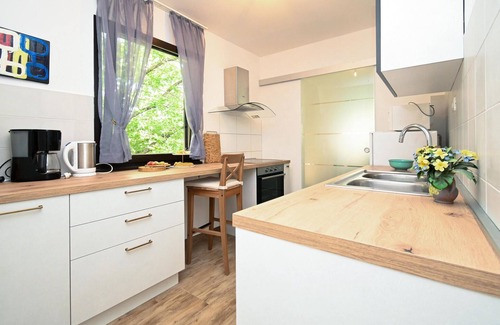 The large garden offers you pleasant shade under the fruit trees as well as bathing facilities for the children and plenty of space to run around and play. Your beloved four-legged friend will also have a great time in the fenced-in area.