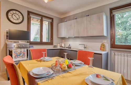 The holiday home impresses with its tasteful furnishings and offers plenty of space for a large family. In the cosy living area, you can make yourself at home on the comfortable sofa. The modern kitchen is well-equipped and invites you to prepare authentic Tuscan specialities. Take your meals in the stylish dining area and enjoy your time socialising.