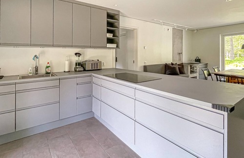 Welcome to this bright and spacious holiday home, which invites you to take a relaxing break in its stylishly furnished rooms with a great location right by the sea and close to well-maintained golf courses. Conjure up culinary highlights in the open-plan kitchen, plan your adventures at the cosily lit dining table and listen to the crackling of the Norwegian stove over a glass of wine in the inviting living room.