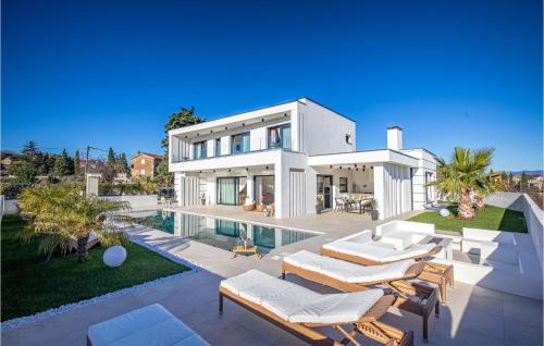 6 miles from Kosljun Franciscan Monastery in Vrh, Nice Home In Krk With Sauna features accommodations with access to a sauna and hot tub. This property offers a private pool, free Wifi, and free private parking. Outdoor seating is also available at the vacation home. The air-conditioned vacation home consists of 4 bedrooms, a living room, a fully equipped kitchen with a dishwasher and a coffee machine, and 4 bathrooms with a hot tub and a shower. A TV with cable channels is offered. The property offers sea views. Guests can enjoy the indoor pool at Nice Home In Krk With Sauna. Punat Marina is 6.8 miles from the accommodation, while Trsat Castle is 29 miles from the property. Rijeka Airport is 14 miles away.