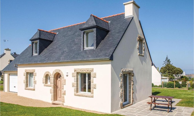 Nice Home In Lanmodez With Wifi is located in Pommelin, just 20 miles from Begard Golf Course and 24 miles from Ajoncs-d'Or Golf Course. This beachfront property offers access to free Wifi and free private parking. Outdoor seating is also available at the vacation home. This vacation home includes 4 bedrooms, a living room and a TV, an equipped kitchen with a dining area, and 2 bathrooms with a shower and a washing machine. The property offers sea views. Guests can relax in the garden at the property. Saint-Samson Golf Course is 25 miles from Nice Home In Lanmodez With Wifi. Brest Bretagne Airport is 81 miles from the property.