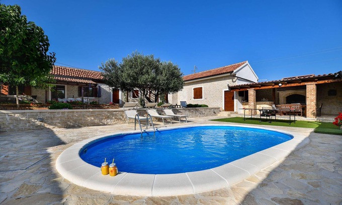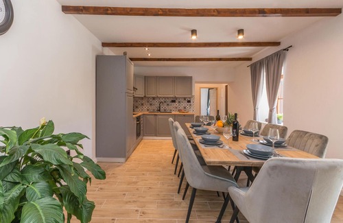 The house is built in the original stone architecture, while the interior is modern. At the same time, the kitchen is equipped with high-quality appliances and utensils, there is a gym with entertainment room, as well as Playstation 4, smart TVs, table soccer, a board game table and darts. The house is well suited for a vacation with smaller children. Pets are also allowed here on vacation.