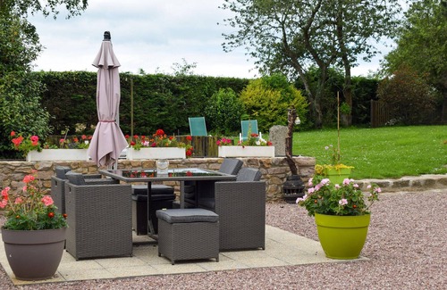 The one of two stone houses in a beautiful garden in the countryside. The two accommodations are independent of each other, but can be booked with advantage at the same time, so as to be able to form the vacation framework for the even larger travel group. See FBC245 for more information. Equipped with rustic and cozy furniture, the house has a fireplace, which allows you to spread a warm atmosphere with the beautiful fireplace during the fresh evenings. This beautiful region with its rich cultural heritage offers you many excursions nearby such as the chapel of Kermaria and its famous fresco. Bréhat, the beautiful island of flowers, is also worth a visit.