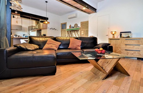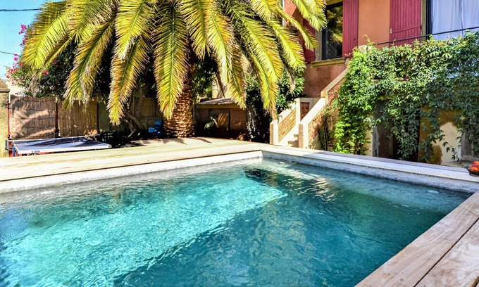 Warm and cozy, it will delight you with its location in the heart of a charming little village. With living space on two levels, it is set in a small garden and offers a lovely terrace with a large palm tree shading part of the courtyard. The pretty pool is surrounded by wooden decks where you can tan. A table tennis table is at your disposal.