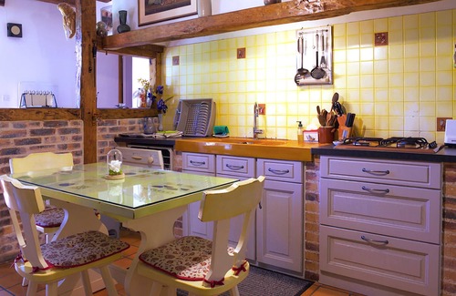 Enjoy your stay in an authentic house surrounded by an unspoilt park. The spacious living area is furnished with rustic wooden beams, stone walls and a fireplace. Relax on the sofa or socialise at the long dining table, which seats the whole family. Prepare your meals in the cosy kitchen with its rustic character and use the small table for breakfast in the morning.