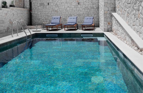 From the living room you directly come to a beautiful yard with a swimming pool (4 x 8.75 x 1.5) and a heated shower. Next to the pool there are 6 sunbeds and a sitting area where you can relax and enjoy. Thanks to the Mediterranean style of construction, beautiful view of the Adriatic and nature around the villa Marisol, you will experience the charm of a typical Dalmatian town.