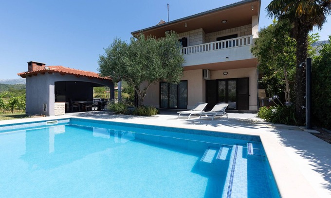 Nice home in Srinjine is located in Srinjine. Nice home in Srinjine provides accommodation, featuring Pool, Security/Safety, Fireplace/Heating, among other amenities. This House features Pool, Security/Safety, Fireplace/Heating, to make your stay a comfortable one.