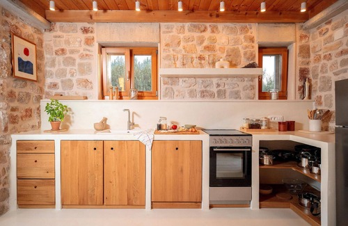 Villa Arte was built in 2022 in a rustic construction style, it offers its guests 160 m2 of living space, while the total area of the property is 400 m2. It is fully air-conditioned and provides accommodation for a maximum of 8 people, while the optimal number is 6. You will be comfortably accommodated in 3 bedrooms, two of which have double beds and the third room has 2 single beds. As an additional bed, there is also a folding futon for two people (80x200). The villa also has 3 ensuite bathrooms, two of which have a shower, one has a bathtub and one separate toilet. If children are coming with you on holiday, you can use a feeder and a baby cot.