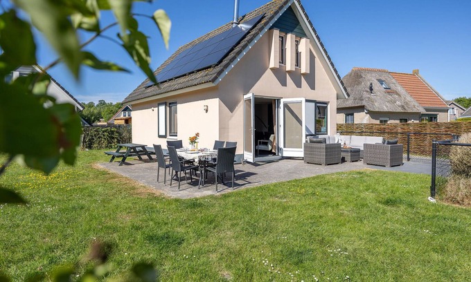 This beautiful and well-kept holiday home in the picturesque province of Friesland awaits you in an inviting holiday park. In the living room and on the terrace you have a marvellous view over the meadows. After an active day in the beautiful surroundings, you can relax with your family and friends by the wood-burning stove in the living room. So that you don't have to miss out on your favourite series on holiday, you can watch Netflix in the house. The open-plan kitchen is connected to the living room. The bathroom has a walk-in shower. The holiday park offers facilities such as an outdoor pool with separate children's pool, cafeteria, playground, table tennis, tennis court and volleyball court. You can hire bicycles at reception. The immediate vicinity of this holiday home has a lot to offer. Visit the Wadden Sea, where you can go on mudflat walks and enjoy the unique nature. You can cycle or walk along the dyke towards Harlingen, with views of the Wadden Sea on one side and the typical terps with authentic farms on the other. The beautiful harbour town of Harlingen is only 14 km away. Here you will find a beach and many shops, but you can also admire the town hall, the lighthouse and the Zuiderhaven marina. From Harlingen, the ferry sails to the Wadden Islands of Vlieland and Terschelling, which are definitely worth a visit. Just 5 km from the holiday home is the town of Franeker, known from the Eleven Cities Tour. Visit the old town centre and the planetarium. Leeuwarden, the capital of Friesland, is only 22 km from the holiday home. On cooler days, you can visit the Aeolus indoor playground with your children. This playground is only 5 kilometres away and offers a variety of activities. There is a lot to discover in the glass pyramid. The holiday home is about 7 km from the Bloemketerp indoor swimming pool in Franeker. In March 2019, a complete wellness area was realised in this holiday home. Enjoy the spacious Finnish sauna for 5 people and the whirlpool for 6 people. The wellness area is enclosed by a partition wall, offering you plenty of privacy. After a visit to the Finnish sauna, you can simply shower under the outdoor shower. 2 pets are welcome in the holiday home. The garden is completely fenced in, making this holiday home very pet-friendly.