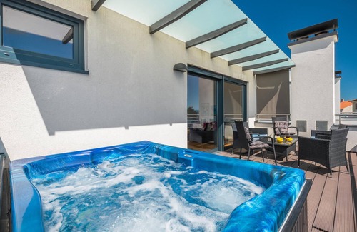 This attractive semi-detached house with many additional facilities is located in Valtura, a small town near Pula. The interior of the house is spread over three floors and is furnished in a modern style. The comfort and pleasure of the holiday is complemented by fitness equipment, sauna and jacuzzi, which are located on the top terrace overlooking the sea. On 1000m2 of fenced yard there is a swimming pool with heated water, various facilities for children and a beautiful olive grove. Take the opportunity to visit ancient monuments from Roman times in one of the nearby tourist centres. In nearby Valtura you can see the remains of the oldest settlement on the peninsula, the former Illyrian capital of Nesactium. Today it is a kind of archaeological park with preserved architectural remains from antiquity and late antiquity. Visit nearby Pula, where you can see many sights from its long history. The city's most impressive buildings date back to Roman times. Next to the Roman amphitheatre, better known as the Pula Arena, and the well-preserved Temple of Augustus in the Forum, you will find the Dirke Mosaic and the Triumphal Arch of Sergius. If you head west, you will come to the town of Vodnjan. A polenta festival is held here in July, where you can try this dish with a variety of sauces. Visit the Basilica of St Blasius with the highest church tower in Istria and an enviable collection of mummies. We recommend a day trip to the Brijuni National Park. Boats depart from the small fishing village of Faana to this famous archipelago with its unique flora and fauna. Many restaurants offer traditional dishes and wines.