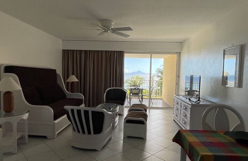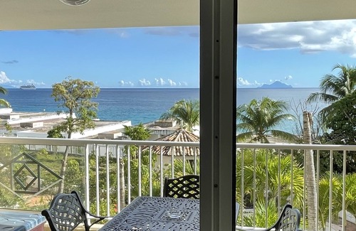 Nice spacious studio, 68 m2 with terrace , beautiful garden and ocean view , located at SBC , Cupecoy discrete . Swimming pool, direct beach access, nearby beaches, golf , restaurants and supermarkets.