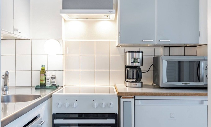 For your convenience, there's a coffee maker, an electric kettle, and a toaster. Enjoy the free WiFi and Smart TV. And you can even travel light because you'll have a washing machine.