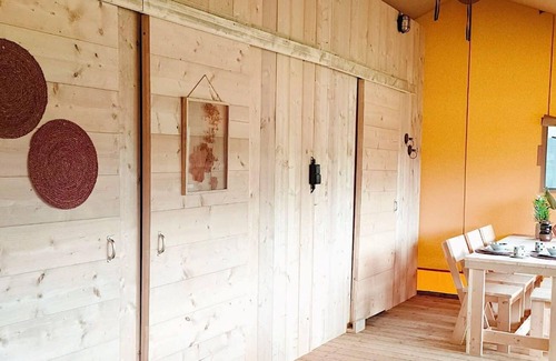 Nice tent with bathroom, near a recreation area is located in Municipality of Langedijk. Nice tent with bathroom, near a recreation area provides accommodation, featuring Balcony/Terrace, Security/Safety, Child Friendly, among other amenities. This House features Balcony/Terrace, Security/Safety, Child Friendly, to make your stay a comfortable one.