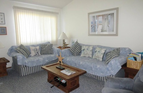 This is a townhouse with three levels on the Ocean Side. Just a block from the beach and 5 blocks from Bay View Park with Bay Beach and Playground. This unit has a deck off the back that overlooks the pool, complete with patio table and chairs a grill, and two lounges. The master bedroom is located on top floor for privacy with personal bathroom. There is central air and also a ductless unit on the upper floor to make the whole unit cool and comfortable. There is a special temper pedic mattress, for those with bad backs. TV provided in each bedroom. The pool is open July & August. The outside shower is located by the pool. The beach badges are supplied as a courtesy by the owner, and cannot be guaranteed. The owner also provides a beach wagon. No smoking or pets please. Owner provides pillows and blankets/comforters for your use.