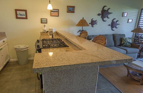 This second-floor,vone-bedroom condo has views of the sparkling blue waters of the Pacific Ocean, Molokai's ancient fishponds, and the island of Lanai from the lanai. Wintertime features the whales breaching in the channel and the sun setting over the ocean. This condo is furnished with a 48" smart TV and WiFi.