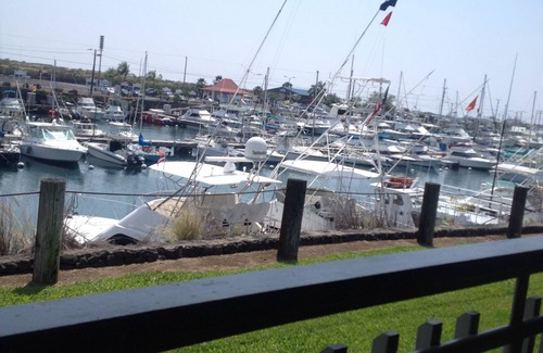 The lanai has a partial view of Kailua Bay and Kona town. The east bedroom has a window with a gorgeous view of Hualalai mountain, if you are an early riser. Great location near the ocean side of the condo but away from the noise of the nightclub/restaurant. One minute walk to the ocean where you can snorkel, fish, surf or swim.