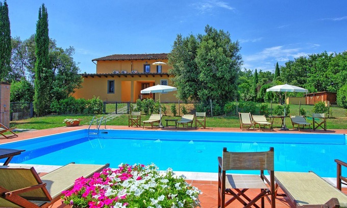 Nicola - Vacation villa rental with private pool in Vinci, Tuscany is located in Cerreto Guidi. Nicola - Vacation villa rental with private pool in Vinci, Tuscany provides accommodation, featuring Fireplace/Heating, Barbecue/Outdoor Cooking, Child Friendly, among other amenities. This Villa features Fireplace/Heating, Barbecue/Outdoor Cooking, Child Friendly, to make your stay a comfortable one.