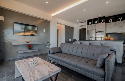 The villa measures 100 square meters all in the same level with direct access to the infinity swimming pool and the amazing sea view.