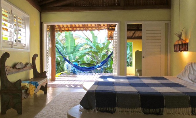 Nirvana Beach Hotel offers a 500-yard beach area on Maraú Peninsula, a wildlife sanctuary and fruit plantation. It features free WiFi, restaurant, bar, buffet breakfast, afternoon tea and a TV lounge. With a rustic décor respecting local architecture, the suites provide ocean and jungle views, ceiling fans, hammocks and private bathrooms with hot showers. The natural pools of Taipus de Fora are located 5 mi away. Barra Grande village center is 0.9 mi from the property. Itacaré beach and village are 28 mi from Nirvana Beach Hotel.
