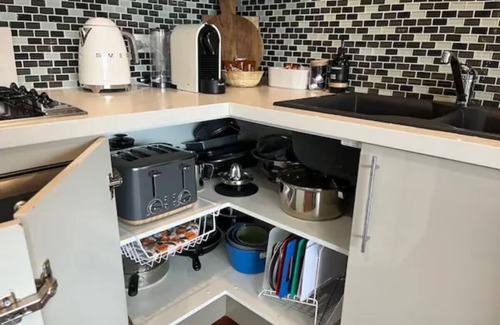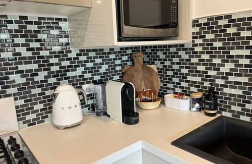 • Kitchen: Fully equipped with fridge/freezer, gas cooktop, oven, dishwasher, microwave, Nespresso machine, sandwich press and essential pantry items.