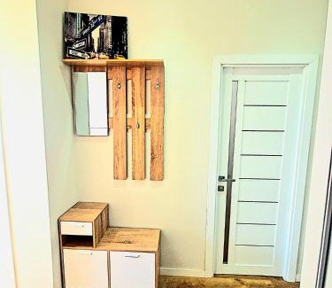 Food & DrinkTea/Coffee makerBathroomShower, Toilet, Towels, Body soap, Towels/Sheets (extra fee), Toilet paper, Private bathroom, Bathtub or shower, Shampoo, HairdryerMedia & TechnologyFlat-screen TV, TVGeneralIron, Air conditioning, Heating, Ironing facilities, Hardwood or parquet floors, Smoke Alarm, Trash cansOutdoorsBalconyKitchenCoffee machine, Microwave, Cleaning products, Dryer, Kitchen, Electric kettle, Oven, Dishwasher, Refrigerator, Kitchenware, Stovetop, Wine glasses, Dining table, Washing machineLiving AreaDeskViewView, City viewBedroomWardrobe or closet, Childrens' cribs, LinensAccessibilityAccessible by elevator, Upper floors accessible by elevatorBuilding CharacteristicsPrivate apartment in buildingRoom AmenitiesNon-feather pillow, Sofa bed, Clothes rack, Drying rack for clothing, Socket near the bed |