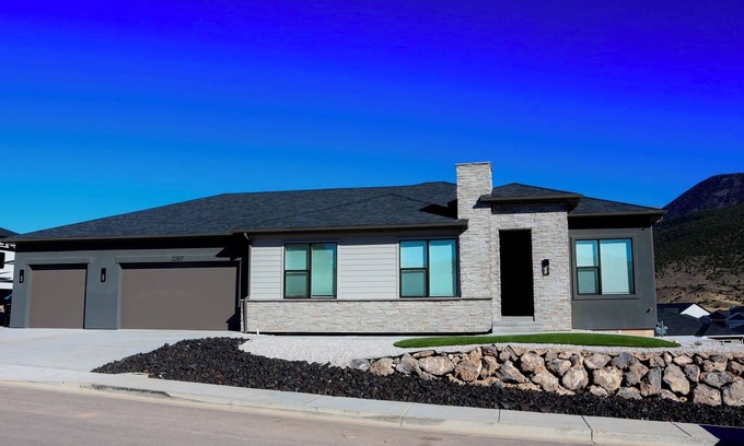 Discover the beauty of Cedar City from this brand new 7-bedroom house. Nestled in a serene neighborhood, this tremendous property offers 3 king beds, 2 queen beds, and more for a tranquil stay. With amenities like WiFi, a coffee bar, movie theater, shuffle board, and multiple desks for remote work, guests can relax in comfort. Only 40 minutes from Zion, 45minutes from skiing at Brian head and just an hour down the road is Cedar Breaks and Bryce Canyon. A great place to call home-base while you're away, we hope you enjoy your stay.