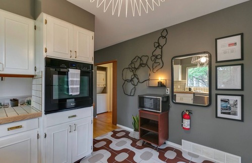 No. 1 Rosetree Suites is a vintage but updated, mid-century modern 1000 square foot main floor suite that is a part of a 4plex. It has its own private entrance on the south (right) side of the building.