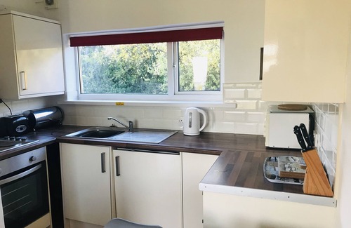 • The kitchen is modern, with a built in oven, hob and fridge, and comes fully equipped with microwave, kettle, and everything else you need to make self-catering easy.