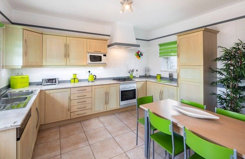 Straight in front, you will find a very spacious and bright open plan air-conditioned lounge and dining area. This is complete with a log burning stove (ideal for the Winter months), and a large smart tv offering english channels on IPTV, and national cable tv (Meo), which also has many English speaking channels. There is a Dvd player, as well.