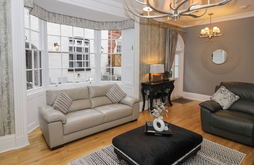 3 Underhill Street consists of a kitchen/diner with double electric ovens, double induction hobs, microwave, fridge, fridge/freezer, washing machine, tumble dryer, dishwasher, coffee machine, toaster and seating for fourteen, a sitting room with an electric fire and Smart TV, a basement utility room and a games room with a pool table, dart board and football table. The bedrooms include two super-king-size with en-suites, three king-size with en-suites and two twins along with a bathroom. Outside, there is a enclosed courtyard with furniture as well as a Pay-and-display public car park. Within 0.3 miles you'll find a shop and in 0.1 miles a pub. Sorry, no pets, and no smoking. WiFi, fuel, power, bed linen and towels are all included in the price. 3 Underhill Street is a truly remarkable choice for your holiday in Shropshire. Note: There are three steps up to the property. Note: Parking is £0.40 an hour. Note: Guests can book car park spaces before travel for a daily or weekly rate.