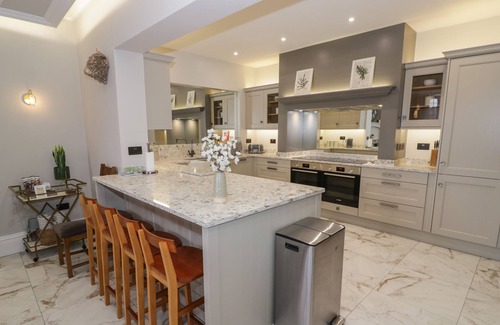 Amenities: Kitchen/diner with Smart TV and seating for 14 people. Double electric ovens, double induction hobs, microwave, double fridge, freezer, dishwasher, and toaster. Sitting room with flame effect electric fire and Smart TV. Basement with games room. Basement utility with separate washing machine and tumble dryer. Electric central heating. WiFi, pool table, dart board, table football, bar area. Fuel and power inc. in rent. Bed linen and towels inc. in rent. Travel cot available. Enclosed courtyard with furniture. External cloakroom with basin and WC. Sorry, no pets and no smoking. Shop 0.3 miles, pub 0.1 miles. Note: There are three steps up to the property. Note: Pay-and-display public car park nearby (200ft). Note: Parking is £0.40 an hour. Note: Guests can book car park spaces before travel for a daily or weekly rate.