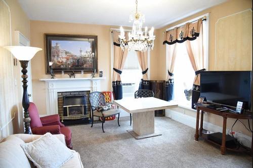 Located in Brockville in Ontario’s Thousand Islands region, Noble Waterfront Suites is a historically recognised property, fully renovated to provide guests with modern comforts and amenities. The property is situated in downtown Brockville, less than 5 minutes’ walk from local shops and restaurants. Each spacious guest suite is individually themed. All suites include a refrigerator, microwave, kettle, toaster and gas BBQ facilities. All suites except The Judges Chambers include a full-size stove and dishwasher. It has a two burner stove. Crystal wine glasses, china teacups, beer steins, cutlery and cooking utensils are provided. Guests will find a selection of teas and a Tassimo coffee maker in their room. Additional amenities include free WiFi, a large LED TV with satellite channels, a fireplace, ironing facilities and air conditioning. Some suites are equipped with sofa beds. For added comfort, the beds are fitted with microfibre sheets. The bathrooms are en suite, and contain a bath/shower combination, complimentary toiletries and a hairdryer. At Noble Waterfront Suites you will find a well-maintained enclosed courtyard garden. On-site parking is available at no extra cost. This property is less than a minutes’ walk from the Tall Ships Landing and Brockville Aquatarium. Canada's first railroad tunnel. The Brockville Museum and Brockville Arts Centre can both be found within 700 metres.