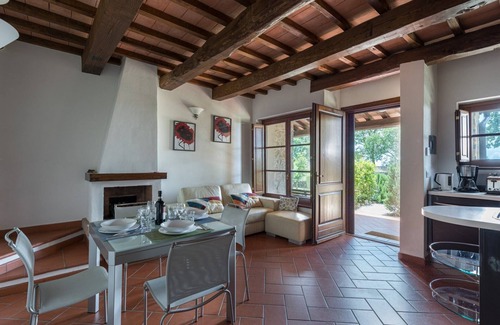 Noce is a lovely mid-terrace cottage with a furnished loggia attached at the front of the property and a private garden to the rear. It offers wonderful views of the surrounding Tuscan countryside.