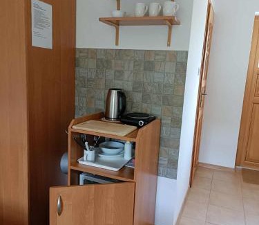 BathroomPrivate bathroom, Shower, Body soap, Towels, Toilet, Toilet paperMedia & TechnologyRadio, Flat-screen TV, TVKitchenRefrigerator, Dining table, Wine glasses, Kitchenware, Electric kettleGeneralPrivate entrance, Trash cans, HeatingLiving AreaSofaBedroomWardrobe or closet, LinensOutdoorsOutdoor dining areaAccessibilityEntire unit located on ground floorRoom AmenitiesSofa bed, Clothes rack |