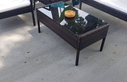 The home has an uncovered patio with outdoor seating great for catching some these Florida sun rays! Kitchen is stocked with everything you need to prepare meals and drinks and we provide all linens, towels, including beach towels and make up towels.