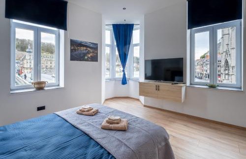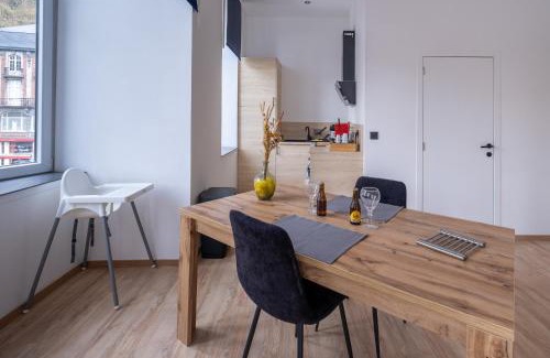 NOMAD APARTMENTS - Côté Meuse offers rooms in Dinant. Free Wifi is available throughout the property, and Anseremme Train Station is 2.2 miles away. Accommodation is equipped with air conditioning and features a flat-screen TV with streaming services, a fully equipped kitchen with a dining area, and a private bathroom with a hair dryer. An oven, a microwave, and fridge are also featured, as well as a coffee machine. The rooms are equipped with heating facilities. Charleroi Airport is 34 miles away.