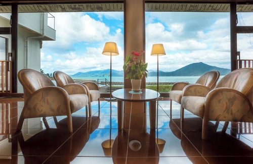 In front of our hotel is the Wakasa Bay of the Sea of Japan and in the background are the Mikata Five Lakes registered under the Ramsar Convention