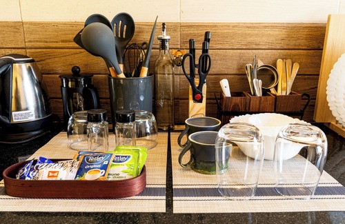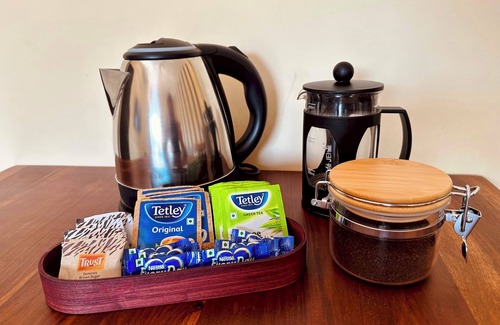 The flat also comes with a fully equipped kitchen, fresh coffee grounds and teas.