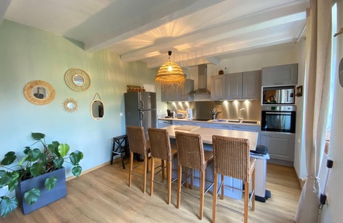 Ideal for a large family or a small group of friends, this picturesque property with heated swimming pool is located in the bay of Mont St Michel. In total, several living spaces, 3 kitchens, 7 bedrooms and 3 bathrooms are at your disposal. layout, distributed as follows: a main unit with a spacious and very pleasant living space, a well-equipped kitchen, 5 bedrooms and a large comfortable bathroom. 2 other annex accommodations are each fully equipped with a living room, a kitchen, a bathroom and a bedroom. Several terraces offer a beautiful view of the famous monastery and invite you to sunbathe, relax and have pleasant meals outdoors. In short, everyone can retire to a quiet little corner, but after many interesting excursions, the pleasures of swimming in the sea or in the private swimming pool, all guests will be happy to meet in the main building for an aperitif with a small drink. of wine, cider or beer from the house's original beer dispenser.