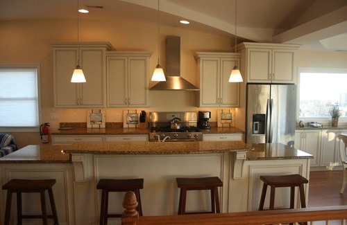 Your vacation getaway has 4 BR's and a den with queen sleeper: 2 queen beds (both en-suites), 4 twin beds, 1 full bed and 1 queen sleeper. There are 3 full bathrooms, 1 half bath, a laundry room, and a wet bar with beverage refrigerator (in the den).